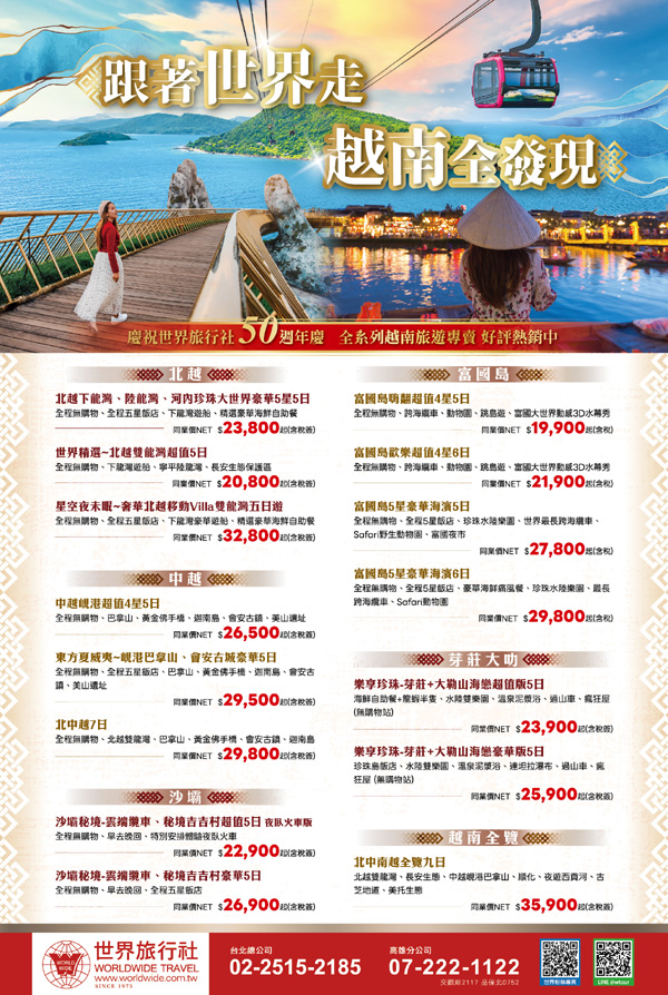 本網站報導之旅遊產品價格,屬於旅遊同業躉售營銷建議,不具旅行社資格之直客消費者,恕無法以該價購買,請另洽各業者直客服務單位。