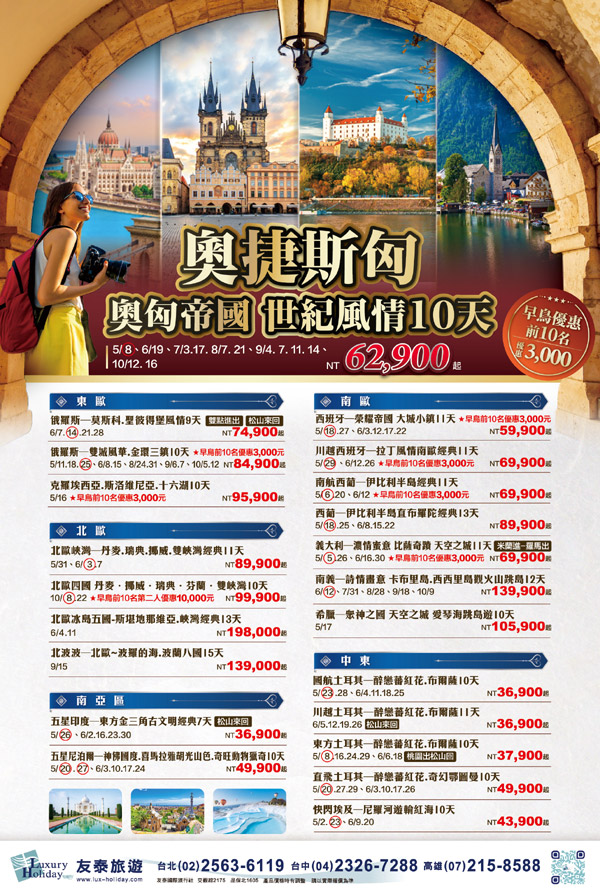 本網站報導之旅遊產品價格,屬於旅遊同業躉售營銷建議,不具旅行社資格之直客消費者,恕無法以該價購買,請另洽各業者直客服務單位。