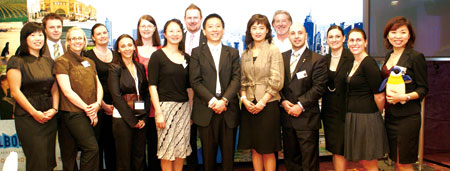 ▲ (左起)澳洲航空台灣區總經理張博傑、國泰航空客運業務代表唐婷華、長榮航空客運本部營業部商務課課長蔡之堅陳家碩、澳洲維多利亞旅遊局北亞地區局長陳智文、中華航空台北分公司客運營業部商務組主任鍾盛儀、菲律賓航空台灣區總經理王林美莉、中華航空台北分公司行銷策劃部經理郝光復、新加坡航空台灣分公司業務經理雍景剛、菲律賓航空業務經理陳振聲。