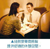 甚者,開放遊客使用「經濟艙配商務艙」的方式也受到極大歡迎,林清榜提到,有些商務旅客去程若搭乘晚班機,會希望有舒適的睡眠空間,回程或許不需要,就改訂經濟艙等或是豪華經濟艙,輕鬆搭配所需要的服務等級,也是紐航的一大特色。