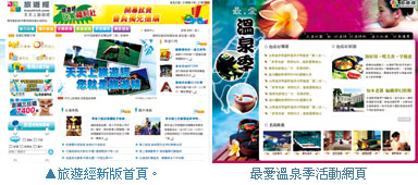 旅遊經營運總監廖晨光指出,此次活動旅遊經網站扮演整合行銷平台,整合各銀行通路與飯店溫泉業者行銷資源,並藉由置入性行銷的手法,除銀行業者品牌推薦及加持外,也直接加強溫泉業者品牌知名度!同時透過網路活動設計,更可協助業者篩選出潛在顧客名單,並刺激提昇平日實際來客數,讓業者在不景氣中用最小的行銷費用,創造出最大整合行銷的縱效。