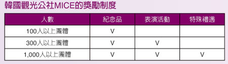 企業主在選擇獎勵旅遊舉辦地點的考量很多,蕭媛晴分析,以旅遊地的特殊體驗、安全性、創意行程、旅遊品質及距離遠近、機位取得、價格等最為關鍵,而韓國優勢在於積極開發觀光硬體設備、30天免簽優惠,且從台北出發只需2.5小時飛航時間,另外針對企業主在進行MICE過程中所產生的問題,韓國觀光公社不但給予支援,另有具體獎勵計畫提供給企業主。