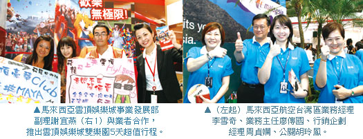 馬來西亞觀光局結合馬來西亞航空、沙巴旅遊局、砂勞越旅遊局、馬六甲州旅遊局以及大馬當地13家旅遊機構、台灣13家旅行社共25個攤位,一同推廣馬來西亞旅遊。