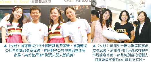 一直為國人喜愛的濟州,今年也與易遊網、百威、狀元、東南等旅行社合作推出濟州愛你「9」更「9」超值方案,吸引民眾搶購。韓國觀光公社台北支社課長朴範錫指出,今年在大家的努力之下,整體成績比去年同期成長45.8%。旅展現場除了韓國正宗亂打秀表演之外,韓國觀光公社強調與民眾的互動性,安排了韓服體驗、投壺遊戲、食客體驗、韓國大會考等活動,盡情感受韓國魅力。
