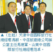 中信旅遊總公司協同天津中信與山東中信共同參展,除了透過精美手冊向台灣民眾介紹名列中國100強旅行社的經營理念,蘊含文化素質的旅遊產品也是中信旅遊總公司持續開發的路線,此外,長年經營商務旅遊與專業旅遊客群,展望未來擴大陸客遊台規模,也將規劃可滿足自家客戶群的主題深度遊程。(撰文.攝影>張肇麟)