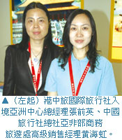 中國國際旅行社總社在全中國擁有20多個控股子公司、120多家國旅集團理事會成員社,據點涵蓋各省市,共同將總社形塑為500強企業中的一員,更是第一批獲得許可經營出境遊的旅行社,影響力擴及海內外。此次參展除了全力廣宣後奧運時代概念旅遊產品外,也針對組團赴台觀光進行市場深入瞭解。(撰文.攝影>張肇麟)