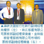 由於珠江客運在香港轉運上扮演舉足輕重的角色,根據珠江客運的統計,每年從水路進出香港的珠三角旅客達到1,800萬至2,000萬人次,在旅遊路線上的規劃漸成為海空結合的趨勢。海峽友誼旅行社總代理的珠江客運,提供台灣同業輕鬆操作香港轉運服務。(撰文.攝影>黃美珣)