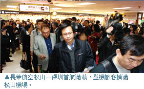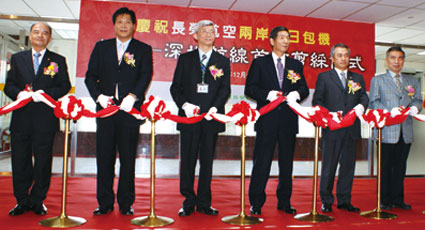 長榮航空松山—深圳兩岸平日包機於12 16首航,並在松山機場舉行剪綵儀式,包括民航局長李龍文、台北航空站主任蕭登科、台北關稅局長饒平、航空警察局長刁建生、台北市政府觀光委員會副執行長趙心屏、台北市航空公會理事長蘇宏義,以及長榮集團總裁謝志堅及長榮航空總經理鄭光遠共同剪綵,儀式簡單而隆重。