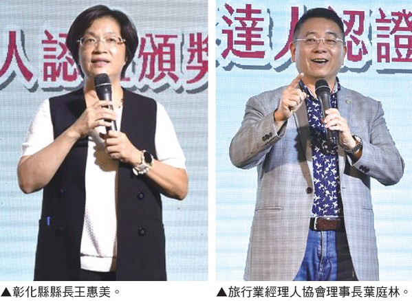 特別出席9/24頒獎活動的彰化縣縣長王惠美表示,彰化旅遊再創高峰,根據交通部觀光署的最新統計,「八卦山風景區」在2024年以623萬人次的遊客數榮獲「台灣國家級風景區」類別的冠軍,「鹿港老街」則以1,730萬旅遊人次奪得「觀光遊憩區」的冠軍,從此不難看出彰化的觀光魅力。然而好產品需要包裝及行銷,過去便有旅遊業者於疫情期間推出高端的純彰化、彰投旅程,讓市場看見彰化其實也能很頂級、好玩。而透過此次全台首次辦理的旅遊認證,期盼這41位旅遊達人成為彰化的種子大力行銷,並以專業包裝出極具故事性的彰化旅程,為在地挹注更多觀光人潮。