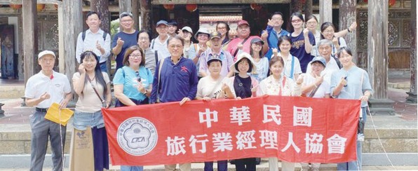 ▲(左起)彰化縣政府城市暨觀光發展處長王瑩琦、彰化縣民宿協會理事長許健泰、彰化縣旅遊產業協會理事長黃昱哲、台灣省遊覽車同業公會理事長陳麗英、旅行業經理人協會理事長葉庭林、彰化縣縣長王惠美、台中市旅行業經理人協會理事長邱志銓、台南市旅行業經理人協會輔導理事長柯詔雅、高雄市旅遊業經理人協會副理事長柯栢青、彰化縣旅館同業公會理事長游禎祥、彰化縣旅行公會理事長葉佳朋。