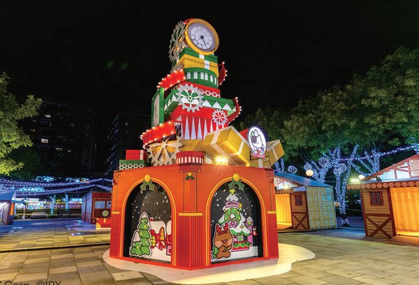 站前廣場今年則打造成「歐洲夢幻童話村」,讓人彷彿走進童話繪本實境!復古歐風小屋在燈光映照下閃耀光彩,街道間瀰漫著浪漫夢幻的氛圍。其中,由禮物盒與緞帶交織而成的「魔幻時鐘塔」矗立在中間,成為最吸睛的焦點裝置。隨著時間流轉,神祕禮物盒會驚喜開啟,,LINE FRIENDS minini角色萌趣現身,伴隨漫天飛舞的雪花飄落,讓人盡情沉浸於雪國童話的迷人世界中。而走訪萬坪公園「minini歡樂點心小鎮」,每個角落都散發著甜蜜的快樂氛圍,處處都是打卡亮點,邀請大家與,LINE FRIENDS minini角色一起踏上無限想像的童趣奇遇,留下美好的回憶時光!府中廣場則以「LINEFRIENDS冒險遊樂場」為主題,打造充滿歡笑與活力的歡樂天地。可愛的LINEFRIENDS角色們化身遊樂場主角,在咖啡杯、摩天輪、雲霄飛車及旋轉木馬等經典設施間盡情暢玩,展現滿滿節慶喜悅。其中,「熊美耶誕城堡」坐落於廣場入口熱情迎賓,歡迎大家一同踏入這座洋溢笑聲與歡樂的夢幻世界,感受最愉悅的耶誕氛圍。
