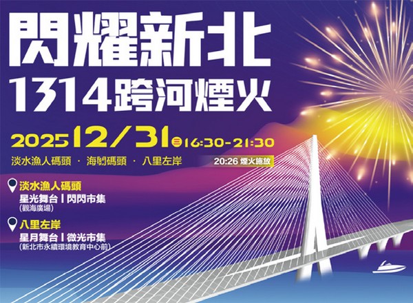 新北市今年冬天推出一系列精彩活動帶來溫暖又熱鬧的城市冬旅魅力。活動自12月起一路延續,將推出市府民政局「2025新北耶誕平安晚會─繽紛燦爛奇妙夜」、「2026年元旦升旗暨健走活動」、新莊區公所「2025LOVE匯新莊學生社團耶誕音樂會」,以及文化局、水利局與高灘地工程管理處合辦的「閃耀新北1314跨河煙火」、青年局「YOUTHMAS青年耶誕趴」、「《新新常》膠囊小專場」、環保局「2025新北耶誕環保挖寶趣」、淡水區公所「2025淡水聖誕點燈活動」、新北市萬里區公所「2026野柳神明淨港文化祭」等亮點活動。
