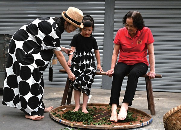 ▲現以腳踩揉捻茶葉的方式已不多見,在遊程中卻能親身嘗試這不可多得的體驗。