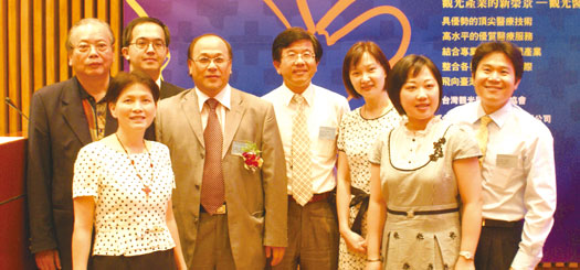 ▲ (左起)國際外科學院台灣總會理事長高見明、羅東聖母醫院健康管理中心經理徐快君、韓風整形醫學美容診所院長李朝熙、台灣觀光醫療發展協會理事長王篤行、敏盛綜合醫院院國際醫療部主任陳興漢、壢新醫院國際服務中心經理陳俐利、童綜合醫院國際醫療服務中心醫療組經理劉昭榮╱業務組經理童俊榮。