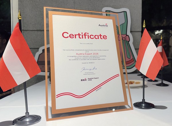 為替充實且成果豐碩的1年畫下亮眼句點,奧地利旅遊局(AustriaTourism)於2025/12/17在台北舉辦「2026奧地利旅遊專家頒獎晚宴(2026 Austria Expert)」,頒發認證證書予本年度完成奧地利旅遊專家培訓計畫的台灣旅遊業者,感謝業界夥伴長期以來對奧地利旅遊市場的支持與投入。