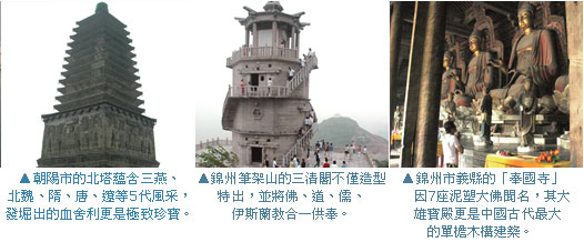 相較於撫順、本溪、丹東等城市所組成的遼東地區,阜新市、錦州市、朝陽市、葫蘆島市以及鞍山市所構成的遼西地區,堪稱旅遊市場的新天地。雖然目前當地的包括道路建設以及住宿條件仍有相當進步空間,但各市所具備的旅遊資源卻是各具特色,十分值得開發,尤其佛教文化在各市中都創造精采景點,錯過實在可惜。