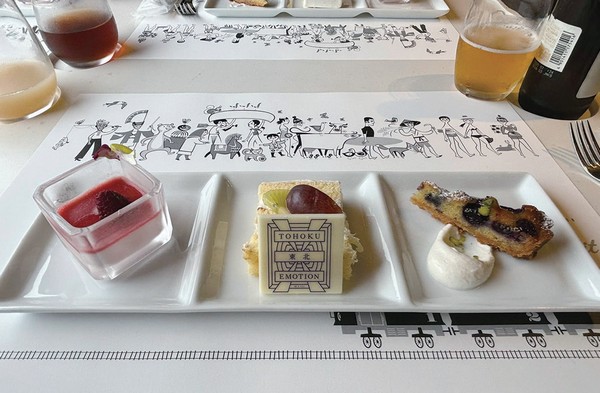 由JR東日本推出的觀光列車「TOHOKU EMOTION」自八戶出發,行駛至岩手縣久慈市,全程約2小時。以「行進的餐廳」為概念,車上供應由東北地區主廚設計的創意料理與甜點。列車內裝以純白色系與開闊窗景營造出高級感,餐具、食材、音樂皆以東北文化為靈感。車上座位採完全預約制,提供午餐與甜點2種行程,極受歡迎。推薦同業可搭配三陸海岸觀光路線,設計成「東北美食鐵道之旅」或高端小團特別體驗。