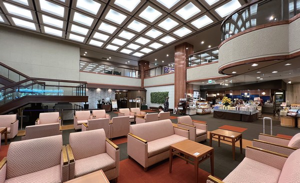 ▲湯本富士屋飯店的接待大廳採用挑高設計,讓整體空間更加寬敞壯麗。