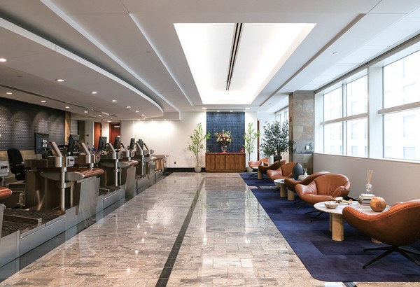 ▲位於亞特蘭大哈茲菲爾德傑克遜國際機場(ATL)國際航廈的「達美至臻商務艙專屬登機報到」空間,結合報到櫃檯與休憩區域設計。