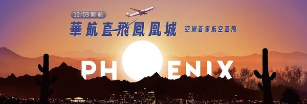 中華航空2025╱12╱3正式開通台北─鳳凰城航線,為華航於北美地區第7個航點,直航飛行時間約12小時,相較於轉機行程可省下6小時的時間,提供旅客往返美國新的選擇。目前為每週三、五、日飛航,採A350-900執航,提供豪華商務艙、豪華經濟艙、經濟艙3艙等,抵達時間為當地下午,讓旅客有充足的時間轉機前往其他熱門城市,也能直接開啟一天的旅程。像是亞利桑那州最著名的正統大峽谷南緣,直飛鳳凰城比洛杉磯少約430公里╱4小時、比舊金山少約830公里╱8小時、比安大略少約390公里╱3小時車程,還可以順遊馬蹄灣跟羚羊峽谷,絕對是最佳選擇。
