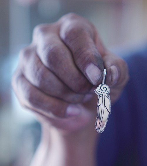 藝術之旅的第一站是銀器大師DwayneTawahongva的工作室。展示了著名的疊銀技術(Overlay technique)。這項技術起源於1947年,由二戰退伍軍人引進並發揚光大。Dwayne熟練地在第一層銀片上刻劃設計,隨後塗抹助焊劑以保護銀面不受火燄損傷,再將其焊接於第二層銀片上。
