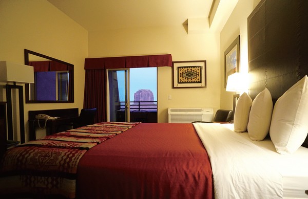 位於紀念碑谷納瓦霍部落公園核心地帶的The View Hotel,是園區內唯一的飯店。由納瓦霍族(Navajo)經營,建築依地勢而建,低調融入荒漠景觀。幾乎每間客房皆設有面向紀念碑谷的私人陽台,清晨可迎接日出染紅巨岩,夜晚則仰望無光害星空。館內設計融入原住民文化元素,餐廳供應納瓦霍風味料理,讓旅人在壯闊風景之中,也能感受土地與文化交織的深刻魅力。
