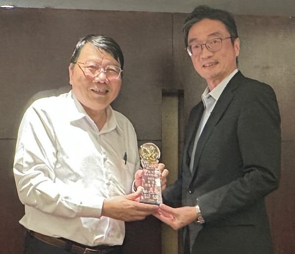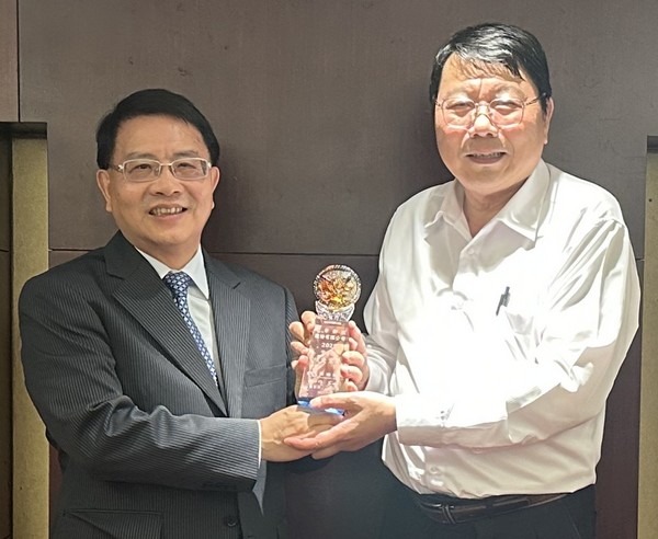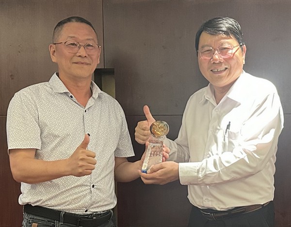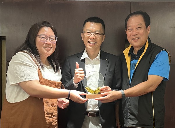 ▲貨運績優業者中華郵政處長柯清長(左)。