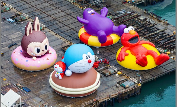 4座巨型海上充氣雕塑9/20於青衣海域首度驚喜亮相,正式揭曉巡遊超強陣容,包括熱潮不斷的日本家傳戶曉的角色多啦A夢;美國頂尖當代藝術家KAWS聯乘深受世界各地人士喜愛的芝麻街,以全新姿態KAWS & 芝麻街(Elmo)重磅回歸香港;麥當勞人氣王滑嘟嘟,掀起無數人的回憶殺,以及知名香港藝術家龍家昇筆下、POP MART旗下風靡全球的LABUBU。