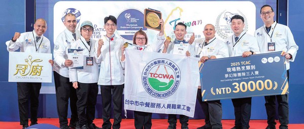 本屆《2025 TCAC台灣國際廚藝美食挑戰賽》中,台灣代表隊再次展現卓越廚藝與堅實實力。尤其在「夢幻隊團隊3人賽(Dream Team Challenge, Taiwanese Only)」中,獲得最高分的隊伍將代表台灣廚藝美食協會,前往《2026年PCC菲律賓國際廚藝競賽》一決高下。本次參賽隊伍涵蓋大專院校、餐廳及工會等單位,包括黎明技術學院、台北城市科技大學、森林敘事團隊以及台中市中餐服務人員職業工會等,各路菁英好手同場角逐,精彩萬分。
