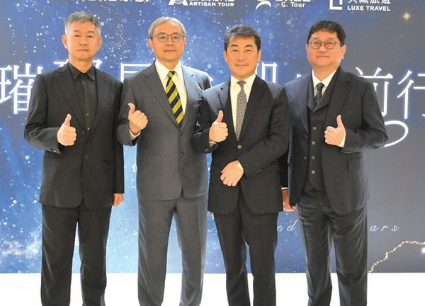 ▲(左起)巨大旅遊總經理吳永昌、凱旋旅遊集團董事長項國棟、巨匠旅遊總經理陳榮裕、凱旋旅遊集團總管理處總經理劉智堅。