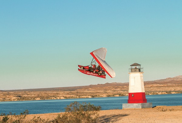 ▲乘著三角翼飛行滑翔哈瓦蘇河。