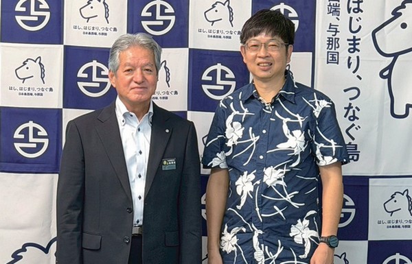 ▲(左起)與那國町町長上地長夫、駿樺旅行社總經理黃啟明。
