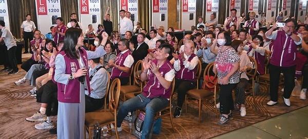 ▲陳怡璇獲選台北市旅行公會第20屆理事長那一刻,興奮與團隊喊話。