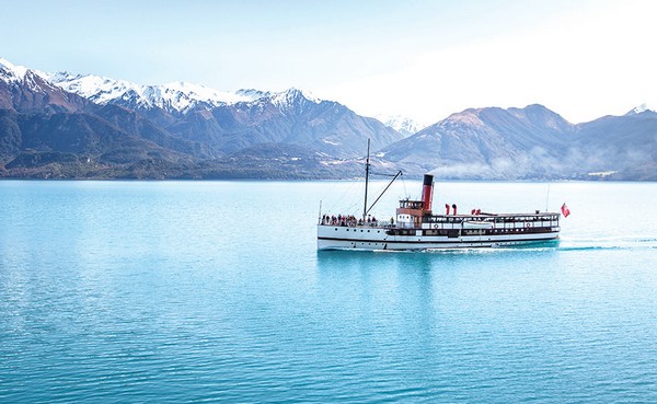 ▲皇后鎮百年蒸汽船巡遊在瓦卡蒂普湖。