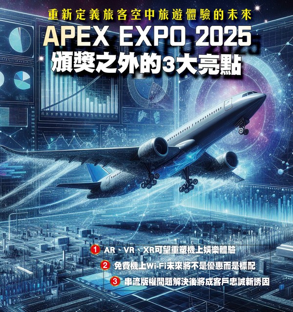 於9/9~9/11在加州登場的 APEX Global EXPO 2025,吸 引全球近2,500位航空公司代表,共同探討航空市場的未來動向,並從機上服務、機艙設計、機場體驗,以及數位化創新科技等面向,一同定義旅客服務的新面貌。