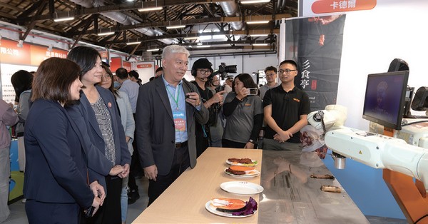 在自動化服務領域,博覽會展現了「全天候餐飲」的商業新模式。觀光署攜手矽谷新創優豈公司(Yo-Kai Express),展示如何利用自動化機台填補離峰時段的人力空白。