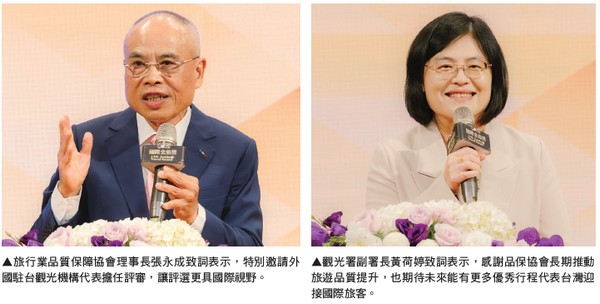 此外,觀光署推動第2屆「觀光亮點獎」,從全台景點中選出十大觀光亮點及百大景點。品保協會也將其精神作為評選標準,透過旅行社串聯周邊產業、提升交通可及性,讓更多旅客走進台灣的每個角落。面對未來趨勢,黃荷婷提醒業界把握數位轉型與永續發展2大方向,不應侷限於現有模式,更要強化領隊、導遊及在地解說員的專業,因為「他們是旅程的靈魂人物」。她分享自身參團經驗,指出一位好的領隊不僅知識豐富,更能以故事呈現文化,讓旅程充滿深度,也讓旅客留下難忘回憶。最後,她承諾觀光署將全力支援業界,讓台灣觀光在國際舞台更加亮眼。