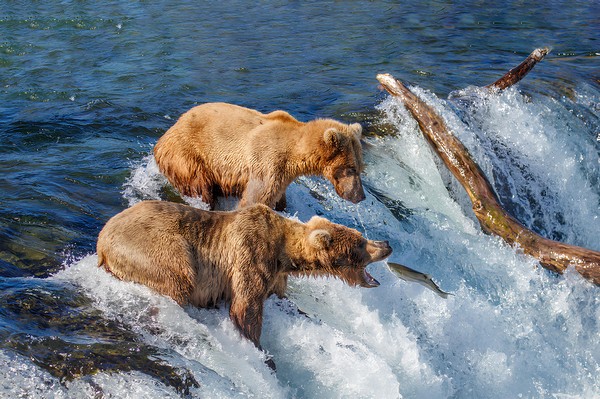 對於玩家而言,「卡特邁國家公園(Katmai National Park)」是神級的存在。這裡沒有聯外公路,僅能依靠小飛機或快停接駁,且園區資源極其稀缺。百夫長旅遊團隊的專業,體現在對「時間成本」的尊重,特別安排於王鮭魚小鎮(King Salmon)連住三晚,意味著您擁有整整四天的深度探索期,讓參加百夫長旅行社的團員更從容地在布魯克斯瀑布(Brooks Falls)的觀景台上,靜候棕熊拍擊鮭魚激起的水花,捕捉那一瞬即逝的野性美學。