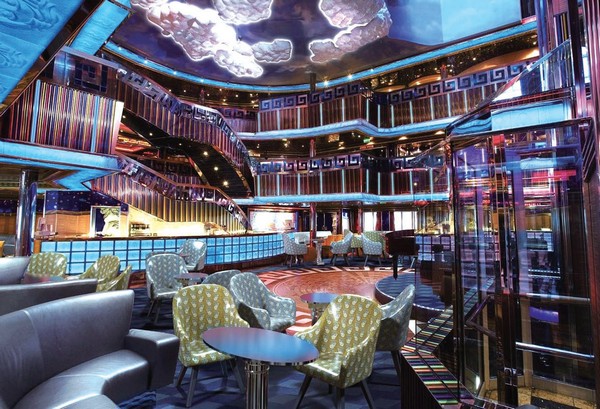 其中迎賓大廳、阿波羅大酒吧全面煥新,「萬神殿」挑高10層,四周環繞大型螢幕,天幕懸掛發光3D列印雲朵裝置,並透過高端設計家居紡織品牌Rubelli的設計,印有古典神像頭的沙發椅布,來延續「神話」主題。「阿波羅大酒吧Gran Bar」則從扶手椅、沙發及地毯,全面更新,讓整體座位區更舒適現代。