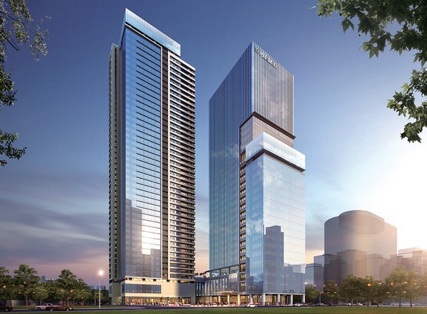 ▲酒店建築由國際知名建築事務所HANDEL Architects與BLINK Design Group操刀設計,整體空間結合品牌與城市意象。