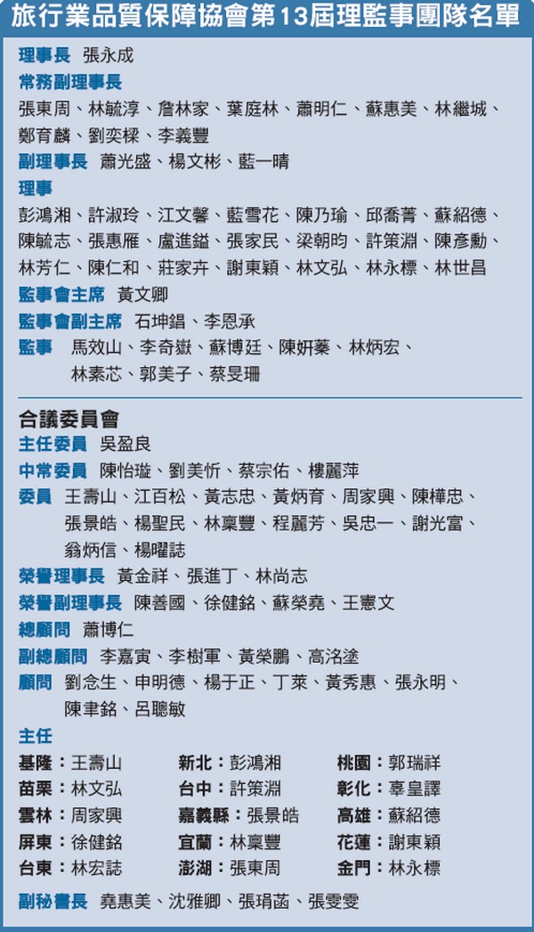 讓會務推展如臂使指 旅行業品質保障協會8部各司其職