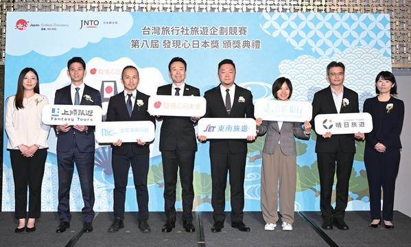 日本觀光局(JNTO)為推動日本魅力特色觀光,自 2014年發起「發現心日本獎」,募集台灣旅行社獨 特創新的旅遊產品,並依據條件從中評選出優質的旅遊 路線。睽違3年,日本觀光局再度舉辦第8屆發現心日本 獎,其中上順旅遊、太平洋旅行社、東南旅遊、喜歡旅 行社及晴日旅遊投稿產品...